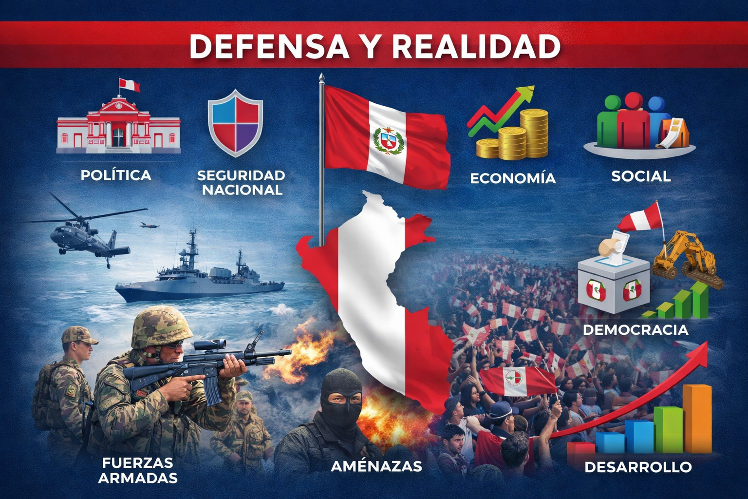El curso “Defensa y Realidad” busca que el estudiante comprenda cómo la defensa nacional se relaciona con la realidad política, social y económica del país. Analiza las amenazas internas y externas, el rol de las Fuerzas Armadas, la seguridad nacional, la democracia y el desarrollo, promoviendo una conciencia cívica y patriótica. El objetivo principal es que el alumno entienda la importancia de la defensa para la estabilidad, soberanía y bienestar del Estado.